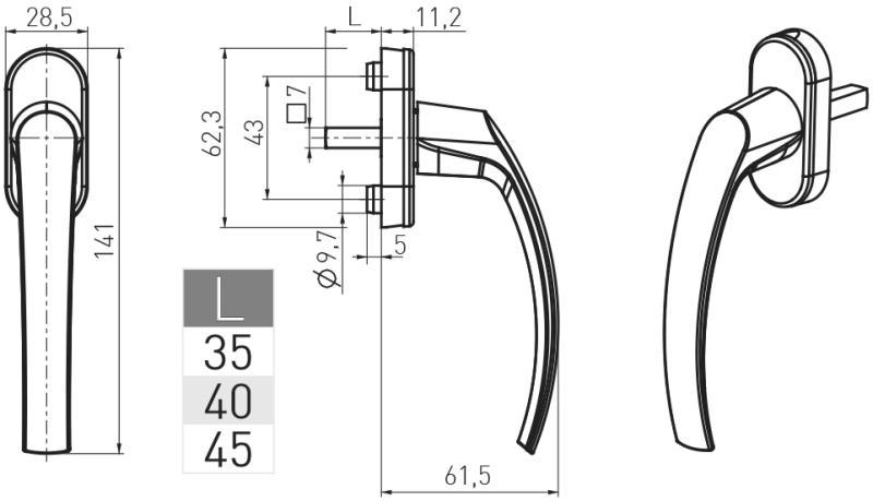 - długość trzpienia klamki: 35 mm 40 mm 45 mm