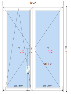 Okno Balkonowe PCV 1500 x 2100 mm - bez słupka