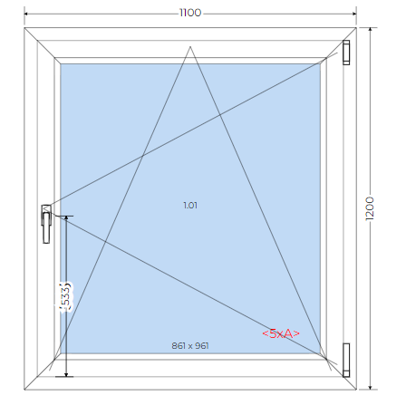 Okno PCV białe RU 1100 x 1200 Uw=0,77 W/m2K