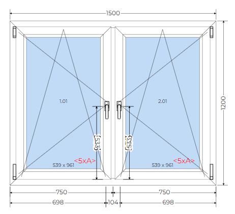 • Szerokość okna: 1500 mm
