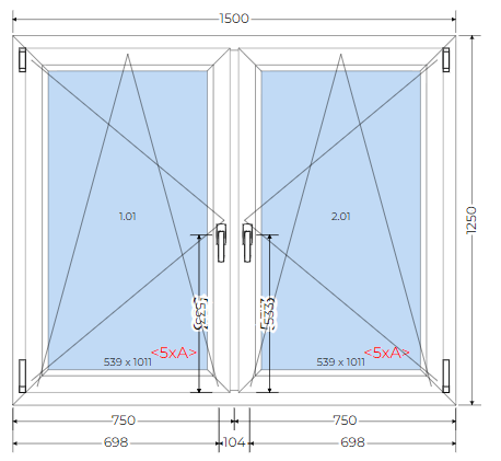 • Szerokość okna: 1500 mm