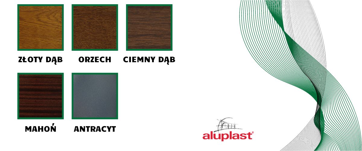 • Kolor okna: złoty dąb, ciemny dąb, orzech, antracyt, mahoń