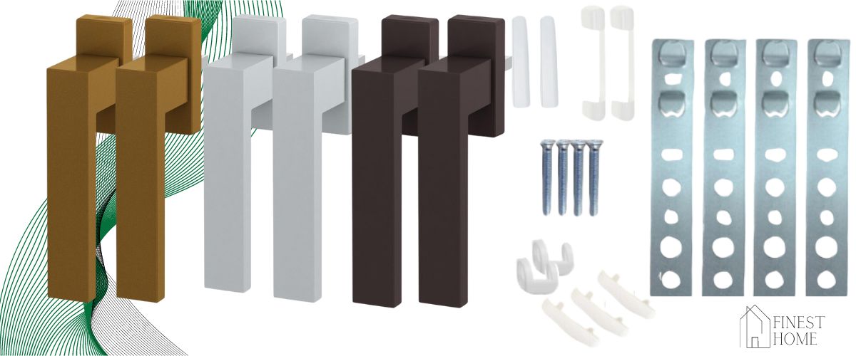 • 2 x klamka: złota - okleina złoty dąb; brązowa - okleina orzech, ciemny dąb, mahoń; srebrna - okleina antracyt