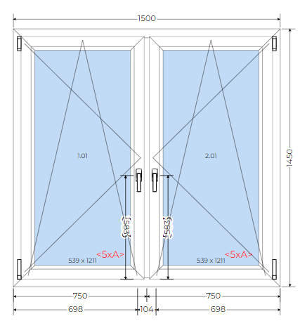 OKNO PCV 1500 x 1450 mm - 2 - skrzydłowe RU + RU