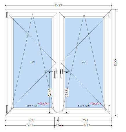 • Szerokość okna: 1500 mm